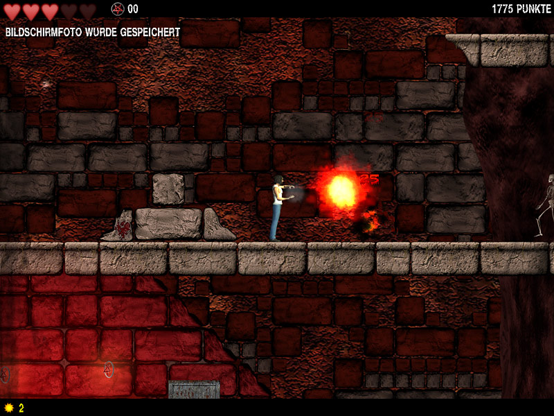 This screenshot shows the fullscreen splatter effect that appears for a brief second when the player character Stevie Speed is hurt. I changed the effect here so it now covers the edges of the screen instead of the center.